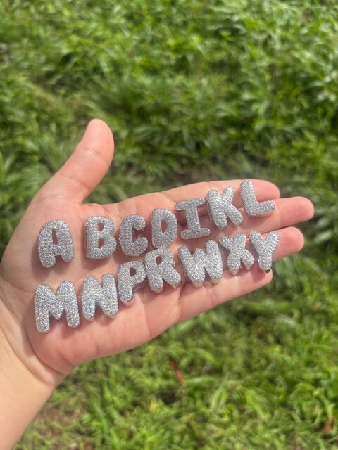 Silver plated letters & cubic zirconia crystals. Price is for 1 letter. Precio es por una letra.