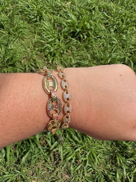 Gold plated & cubic zirconia crystal. Price is for 1 bracelet. Precio es por 1 pulsera.