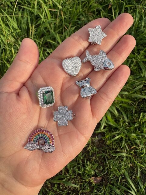 La cinta recomendable para estos charms es de brillo, NO color sólido. The recommended bracelet for this charm is the one with glitter, NOT the solid color.