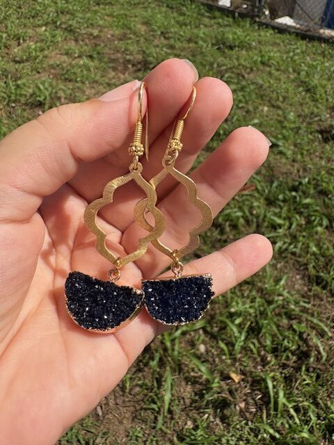 Material Gold Plated & Acrylic Druzy.