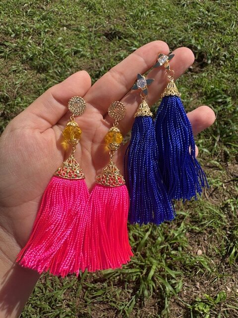 Material: Gold Plated, Glass & Tassels.