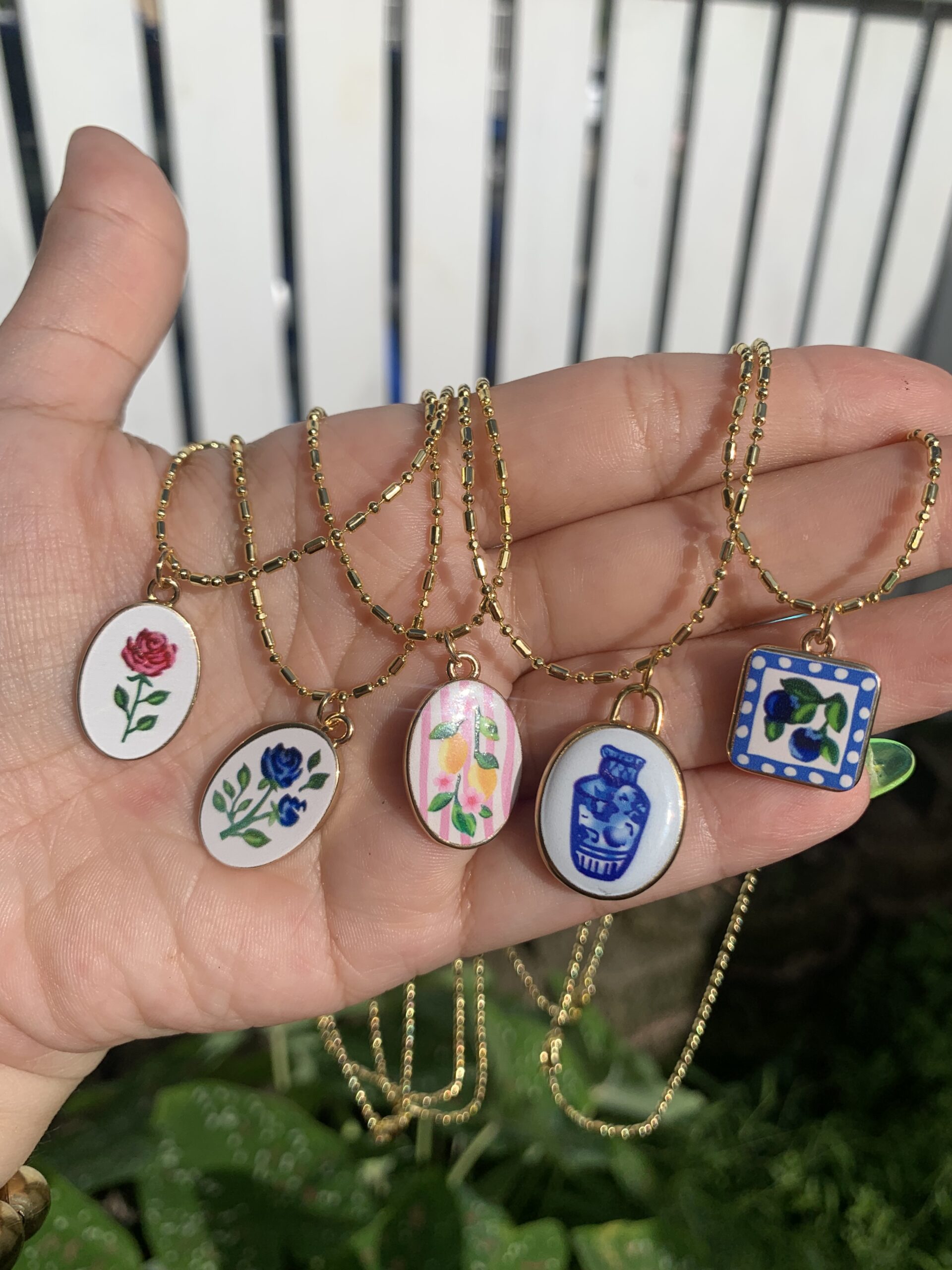 Gold plated pendant & gold plated chain. Price is for 1 necklace. Precio es por 1 collar.