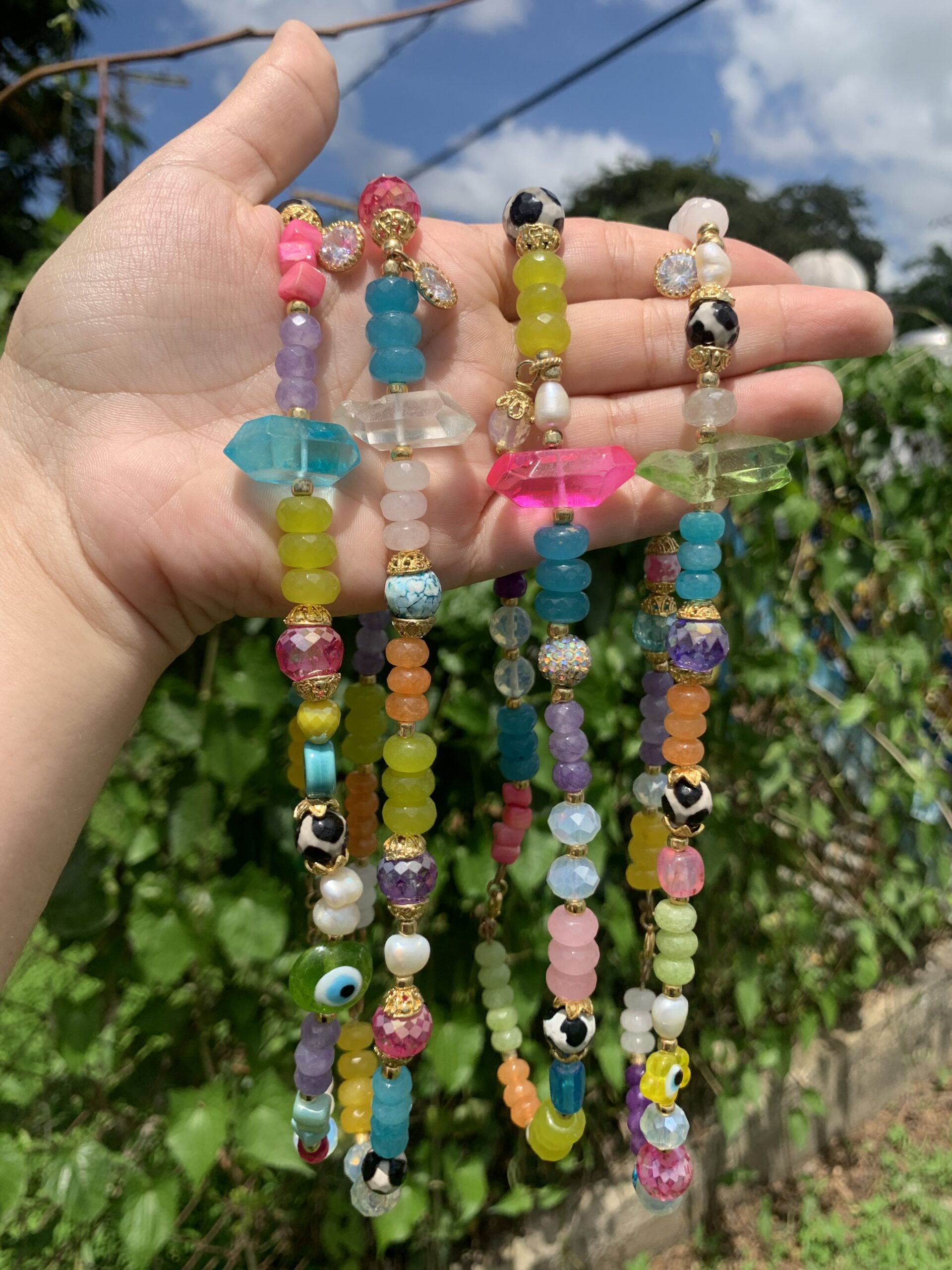 Mix gemstones, quartz and gold plated details. Listed from left to right. Price is for 1 necklace. Precio es por 1 collar.